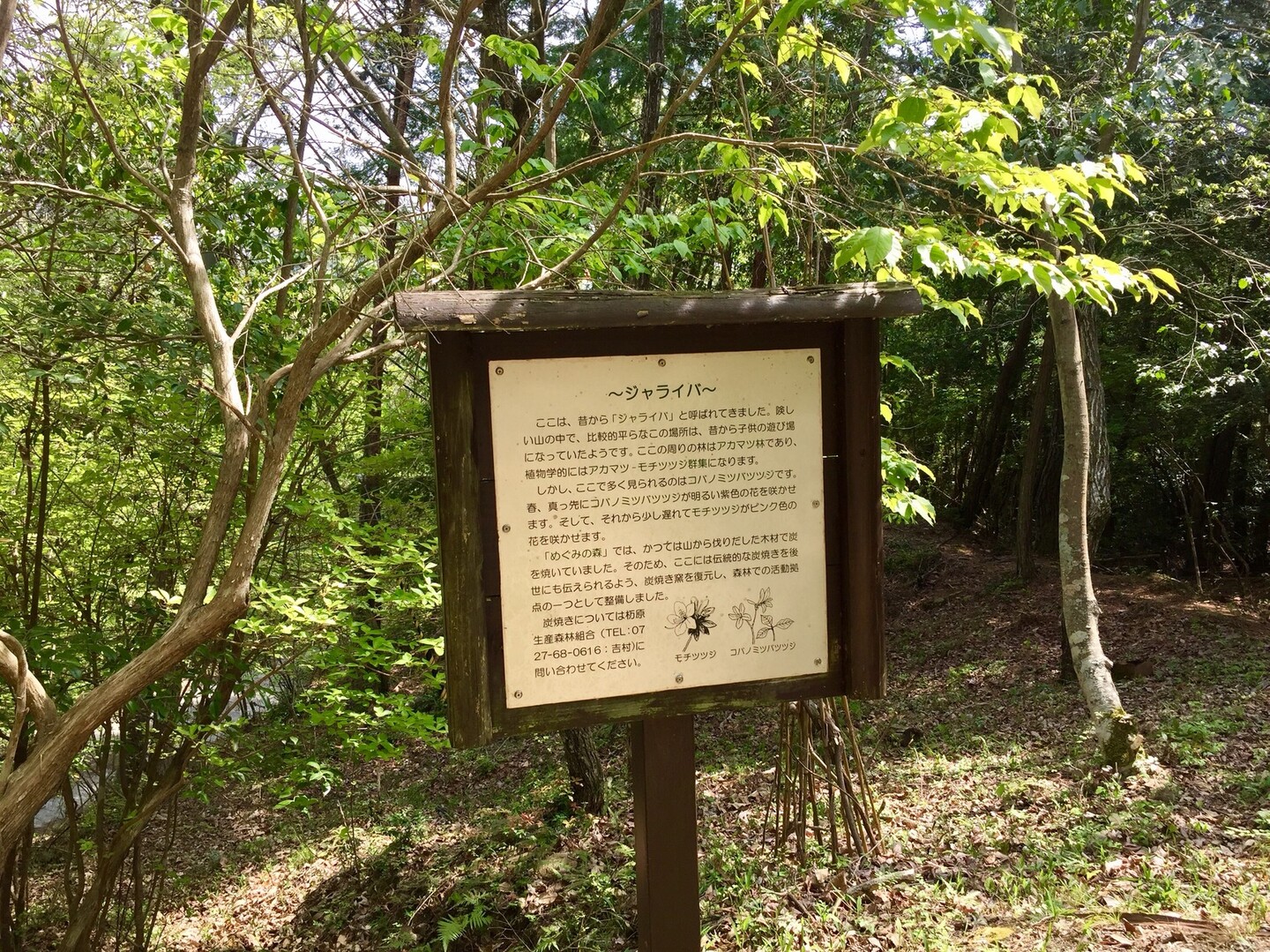 ミツバツツジの花や昆虫、小鳥の囀る美しい里山林です。登山口に